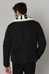 A fixed lamb fur collar with two tightening straps and printed lambskin. Black Horspist on white background.