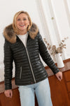 The construction highlights high-end sheep leather, worked with precision. with the know-how and rigor of Oakwood. The fitted cut structures a feminine silhouette and presents you in your best light. The innovation of this model is the thermal insulation of its padded lining. based on Thinsulate Platinum, a fiber that allows you to reach new heights in terms of performance. The entire jacket is quilted. and overcome a fixed hood with removable raccoon fur. The exterior pockets are zipped. 2 other pockets are provided in the lining, one of which has a front pocket. zip.
