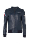 The SOPHIA SHEEP CROWN ROYAL BLUE Jacket from Classic Legend Motors is made of smooth sheepskin leather, offering exceptional durability . This jacket features a biker collar with a snap button, zippers on the left arm and elastic ribbed trims at the cuffs and waist for a perfect fit. The four embroidered Alpine brand logos and the French flag add an authentic and exclusive touch. The cotton interior is printed with a vintage automobile photo, reinforcing the racing heritage of this jacket. It has two interior pockets and three exterior pockets for greater practicality.