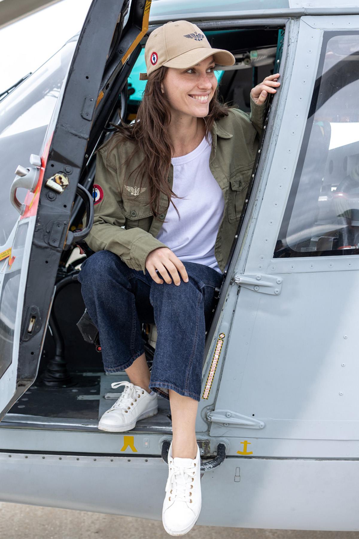 It evokes the spirit of aeronautics with personalized details such as the Navy cockade and the naval aeronautics insignia. This garment was created by Aéro-Design Collection for the Marine nationale brand.