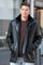 Black leather coat with stand-up collar and removable facing - Image n°6