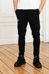 The waist of these pants has a ribbed band which ensures their support without a drawstring. Two vertical raglan pockets are sewn on each side, while the back pocket is zipped and decorated with a decorative border. in black leather. The brand logo is flocked. in white on the right thigh, just below the pocket. The leg ends are hemmed, which prevents them from fraying and also provides good support.