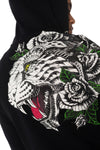This sublime model is adorned with with a beautiful tiger head on the shoulder decorated with rhinestones.