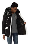 This black polyamide parka is embellished with very beautiful inserts in white lambskin.