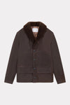 Brown leather jacket with sheepskin shawl collar - Image n°2