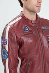The ROLEX SHEEP ATLAS VEG RED jacket is made of premium sheep leather, offering both flexibility and durability. The deep red color and decorative patches add a touch of character that captures the free spirit of the open roads. The slimfit cut of the jacket ensures a fitted and modern silhouette. With its four exterior zipped pockets and two interior pockets, this jacket combines functionality and style. The contrasting bands on the sleeves and the various motorcycle patches accentuate its dynamic look.