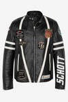 The LCBIKERBADGE BLACK men's jacket from the Schott brand is a biker collar jacket made of black lambskin. It is a jacket suitable for all seasons. It has a regular or straight cut, suitable for all body types.