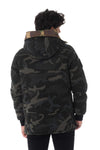 In fact, this reversible jacket offers on one side a hooded jacket. one khaki camouflage and the other a black camouflage.