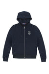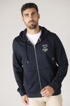 The TWIN FRENCH DARK NAVY sweatshirt from Redskins stands out for its manufacture in high quality cotton, offering incomparable softness and comfort . This all-season model features a central zipper, hood drawstrings with metallic finishes, and ribbed cuffs and waist for a perfect fit. The Patrouille de France logo embroidered on the chest, the tricolor stitching visible on the inside of the collar, and the small flag on the cuff add touches of patriotic style and finesse. A small logo is also present on the sleeve, highlighting the attention to detail.