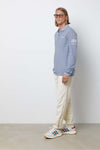 The Chain Polo LS Smocked Blue polo shirt from Hero Seven in detail
