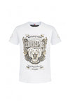 This white cotton t-shirt is highlighted by a sublime gold-colored tiger head with brand inscription just above decorated with of rhinestones.