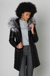 Genuine lambskin, with a fixed hood adorned with magnificent silver fox fur. removable by zip.