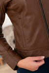 Versatile and timeless, this tobacco-coloured leather jacket is suited for a variety of occasions. For a casual look, pair it with raw denim and a white t-shirt. For a more polished outfit, wear it over a flowing dress with heeled ankle boots. Its tobacco hue easily pairs with a wide range of colours, making it a wardrobe essential. Wear it alone on mild days or layer it under a coat when temperatures drop.