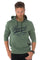 Kangaroo pocket on the front with large brand inscription in blue velvet above.