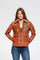 This is a highly trendy women's jacket, equipped with a high-end sheepskin leather construction with irresistible charm. The leather has a patina that will improve over time, as well as a crease that will not leave any fashionista indifferent. The model rewards us with a shearling collar, as well as ribbed knit finishes on the cuffs and back. the size. The central closure is zipped, while the lower pockets are zippered. press-stud flap and split on the sides. A zipped pen pocket is provided on the left arm. Sewn patches further enhance the impeccable aesthetic of this product.