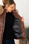 The NAGEL FUR DARK COGNAC jacket by Rose Garden in detail