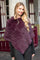 Plum-colored knitted rabbit fur poncho - Image n°3