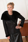The Cityzen brand offers a magnificent shearling jacket with a black entrefinos finish, tone-on-tone, semi-oiled.
