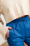 These super classy joggers benefit from a fine and soft sheepskin leather construction to enhance your silhouette and present your legs in their best light. The cut is straight and comfortable, with an elasticated and pleated waistband that will adapt to your body. your body shape. A drawstring at; Size will allow for additional adjustment. The slanted pockets on the sides are piped and finished with great precision. We also note a super classy 7/8 length and a cut edge. totally irresistible frank.
