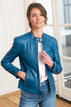 This women's jacket from Redskins, made of high-quality soft sheepskin leather, stands out with its vibrant electric blue that immediately catches the eye. The regular cut ensures daily comfort while emphasizing the silhouette. Design elements such as the quilted shoulders add a touch of ruggedness and style, while the biker snap collar brings a statement rock look. The central zip fastening is secured with a snap button at the waist, complemented by two practical external zipped pockets and stylish sleeve zips. The interior is lined with black nylon, providing additional resistance and increased comfort.