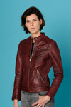 This sheepskin leather jacket has a stretch jersey lining for more comfort.