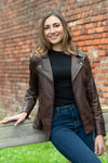 Crafted from high-quality sheepskin leather, the Texas CZ Mid Brown stands out thanks to its tanning process, which gives it a distinctive aged brown tone. The jacket features an elegant, fitted slim fit that enhances the feminine silhouette while allowing plenty of freedom of movement. The asymmetric collar reinforces its biker spirit, while the cotton lining ensures everyday comfort. Practical too, this model includes two outer pockets and one inner pocket, keeping your essentials close at hand.