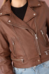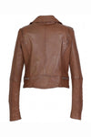Discover timeless elegance with the Oakwood Kyoto Tan 515 women's leather perfecto jacket. This model, designed in washed sheepskin, features a slimfit cut and classic style, ideal for adding a sophisticated touch to your wardrobe. dress.