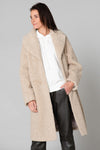 First of all we notice the chic faux fur of this women's coat. The latter is long down to the bottom of the knees. The cut is rather loose and its beige color enhances the happiness we feel at home. wear the garment. The shirt collar has wide edges, to stay right on trend. Two side pockets below the waist will keep your hands warm while guaranteeing you a classy look.