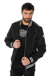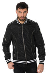Til midt i sæsonen er denne sort printede polyesterjakke ton-i-tone-camouflage perfekt til at tilføje et trendy touch til dit look. à din stil.