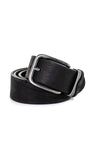 Black leather belt with silver buckle - Image n°2