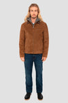 Rust-colored suede leather worker jacket with shirt collar - Image n°1