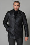 Den krave med kærv. og læder minder om præstationsstilen, men ledsager en lukning, der mildest talt er atypisk. Denne er lavet af store knapper, som pryder det centrale bånd og etablerer en elegant blanding mellem blazer og klassisk læderjakke. Nederste håndlommer er til stede. Indvendigt er der også integreret lommer til opbevaring af personlige ejendele. Vi sætter pris på det tykke og robuste læder samt dets teksturerede finish, som vidner om et high-end materiale og indiskutabel knowhow. Hver søm er omhyggelig, for en viril struktur, perfekt antaget.