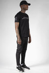 Vi forelsker os øjeblikkeligt i det betagende logotryk på barmen. Dens typografi nyder godt af et meget stilfuldt, moderne og super fornemt design. Sølvbogstaverne er skinnende og fremhævet med stor stil. H'et i Horspist på bagsiden, forbundet med à den trefarvede stribe på den runde hals, forstærker det autentiske præg af det franske mærke. Ærmerne er korte og dekoreret med et logomærke. på højre side. Det naturlige strækbomuldsstof strukturerer den ideelle maskuline silhuet.