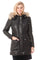 Høj krave med aftagelig hætte med lynlås dekoreret med vaskebjørnpels og udstyret med snøre.