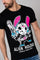Modellen har en klassisk rund hals og korte ærmer. Horspist-logoet er broderet. af dens meget designer H på det ene ærme. Tegneseriefiguren Stitch er afbildet i et kæmpe mønster på forsiden. Vi ser ham i et futuristisk kostume med en pistol. hånd og iført sin Jason-maske. Dette farverige mønster giver en interessant kontrast til den overordnede uigennemsigtige sort.