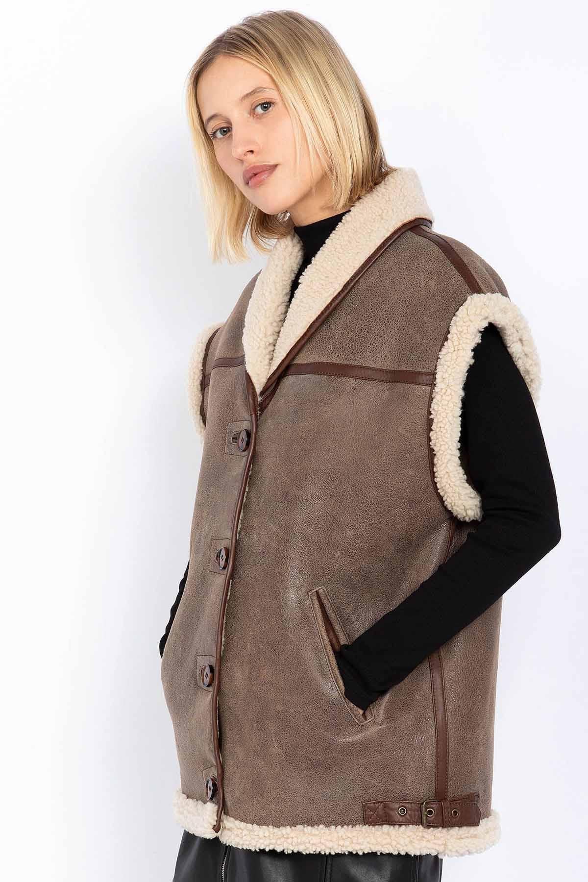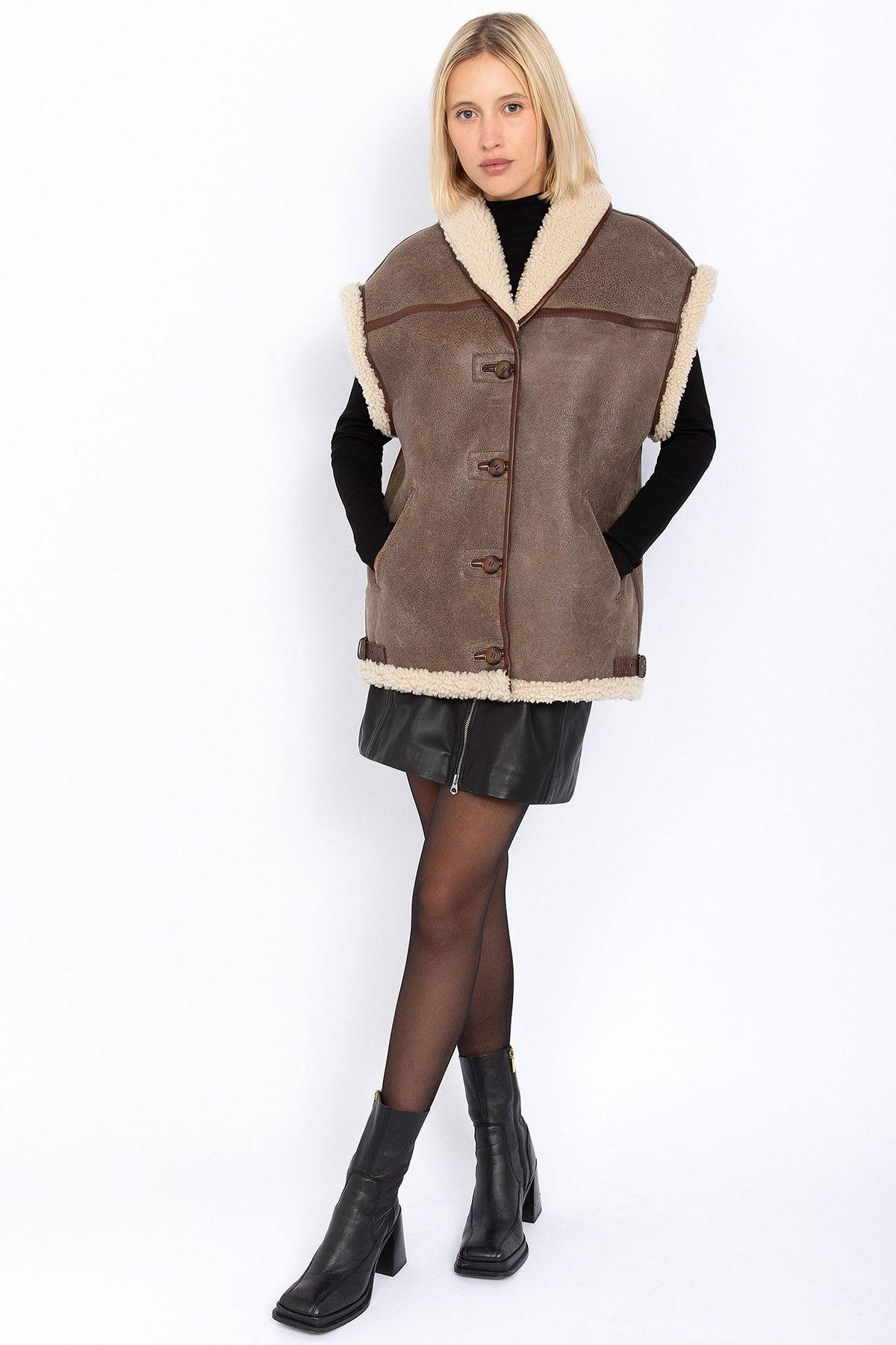 Damejakke Schott LCWCALIE LIGHT BROWN/OFF WHITE