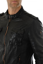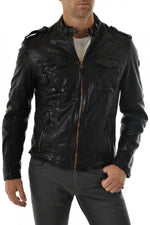 Med fra en bikerkrave til rem, har den 2 sidelommer samt 2 påsyede lommer på brystet. Poterne ved tryk i taljen giver den en særlig stil.