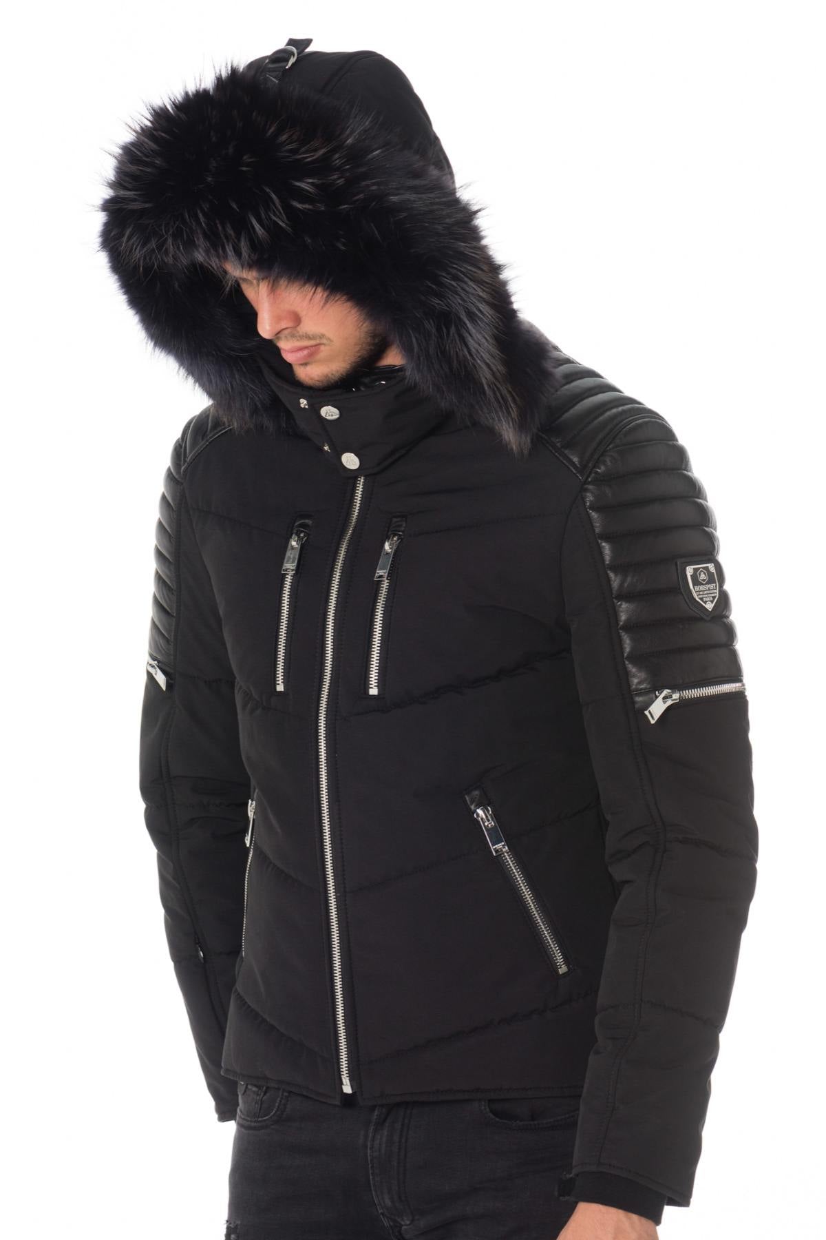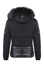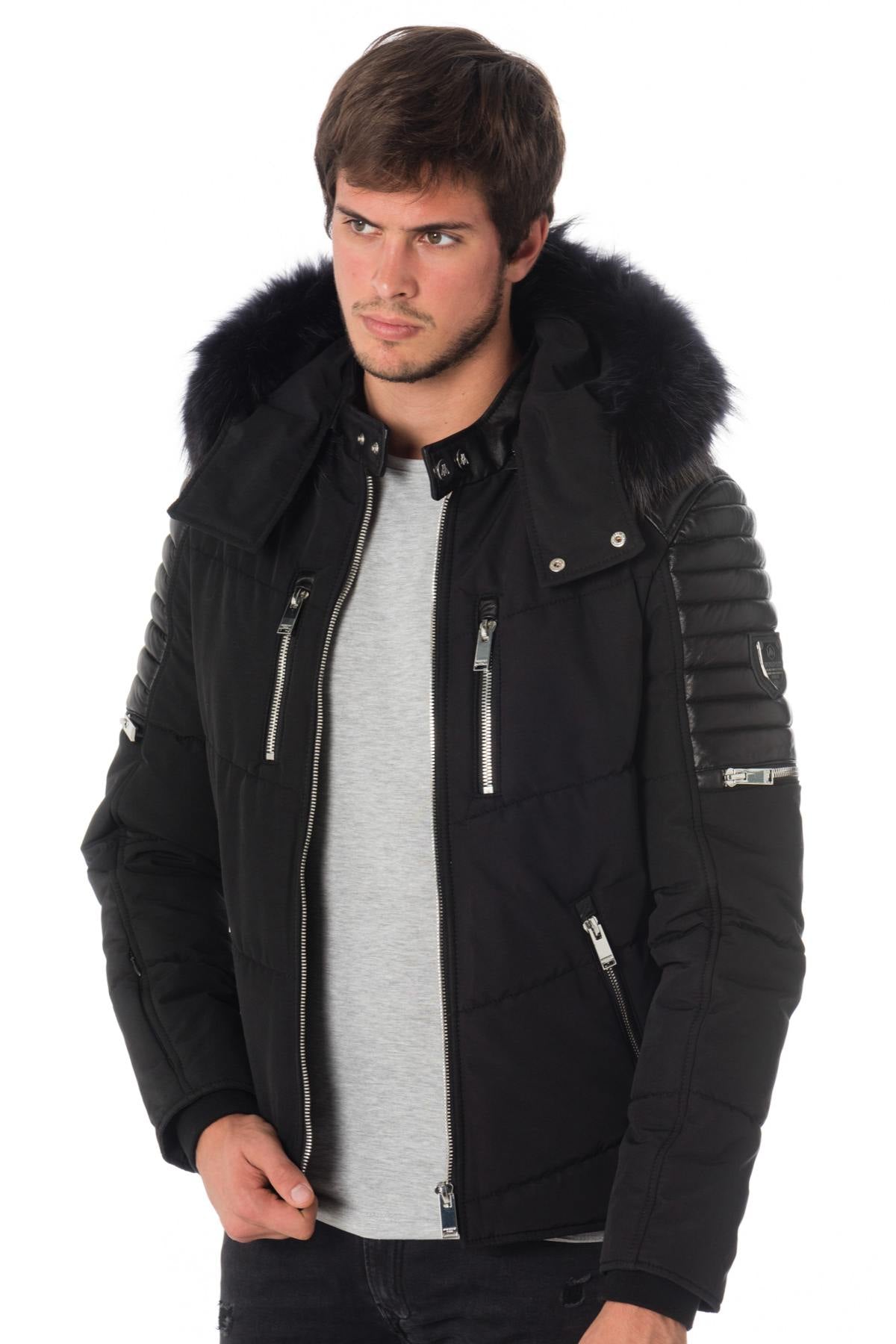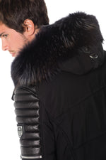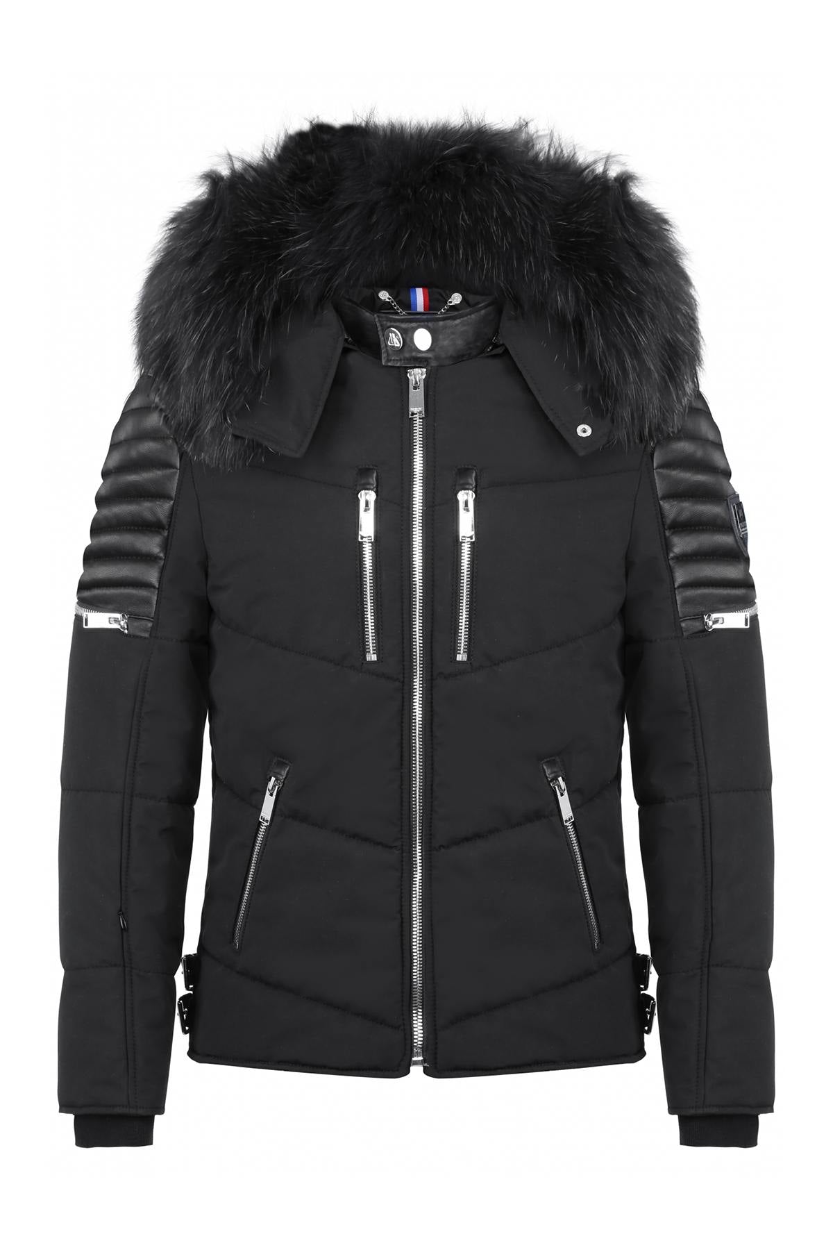 < p>Sort farve med ton-i-tone lammeskindsindlæg.Hætte aftagelig med lynlås prydet med fantastisk vaskebjørnpels aftagelig med trykknapper og lynlås.