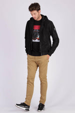 Opdag den sublime LODY BLACK jakke fra KAPORAL-kollektionen, godkendt fra en vender mod; Hætte, der kan tages af med knapper.