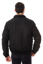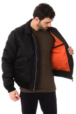Denne sorte version er udstyret med en læderjakke. ribkanter på ærmerne og indersiden; taljen, en skjortekrave og to påsyede lommer.