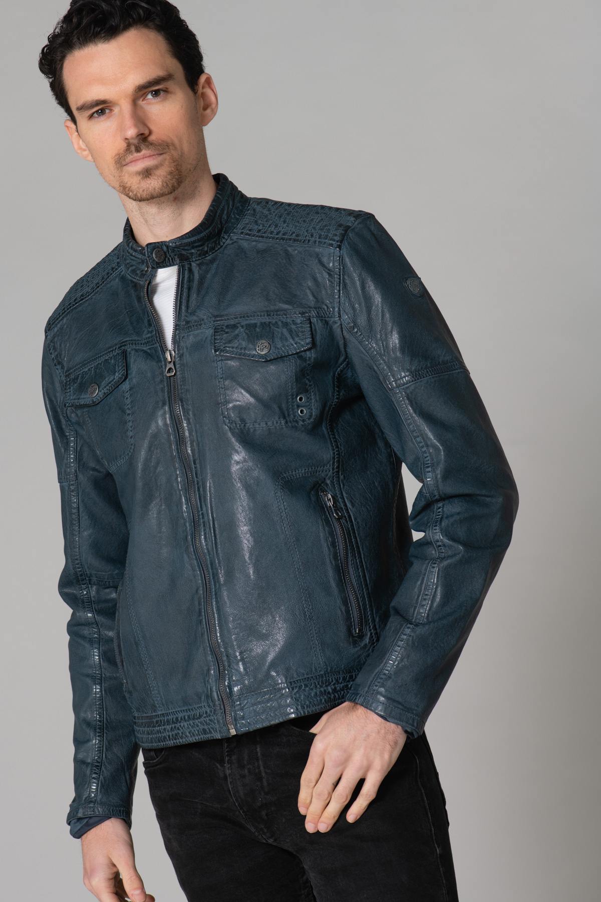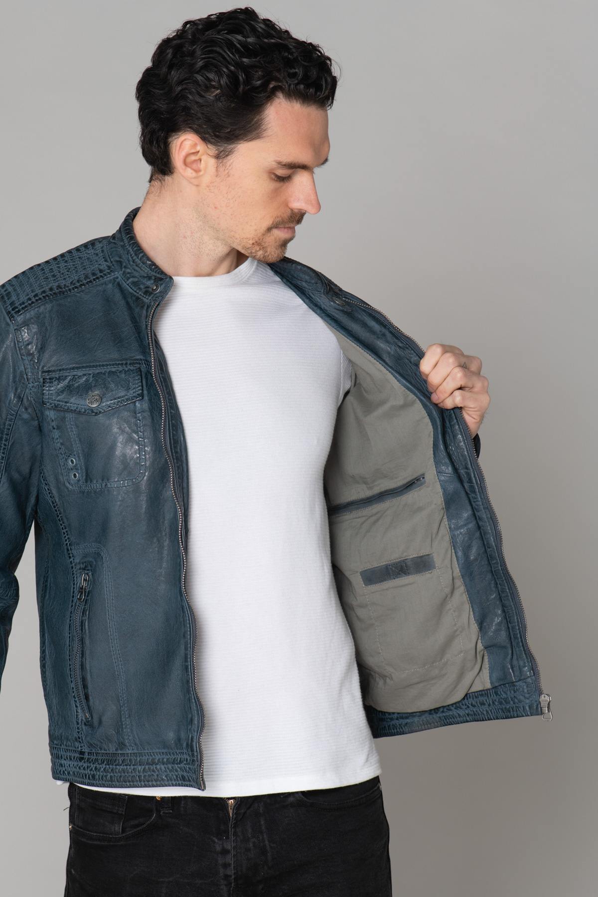 Det vegetabilske lammelæder i denne GBCLANCY LABUV BLUE herrejakke giver dig fleksibilitet og finesse, mens den forbliver let. Denne bikerkravejakke er lavet. af mærket GIPSY og tilbyder et almindeligt snit.