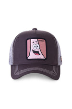 Udskåret i en baseball-kasketudskæring, den har et buet visir udsmykket med hvide syninger, som sætter tonen i hættens mesh-konfiguration. Den skøre karakter Patrick er strømmet til verden. på panden med sit fjollede og glade blik. Et Sponge Bob-plaster er syet på siden af ​​jakken. af kasketten, mens der på den anden er mærket navnet på mærket. For at give dig mulighed for nemt at justere hovedstørrelsen er der et justeringssystem på bagsiden. bagerst.