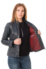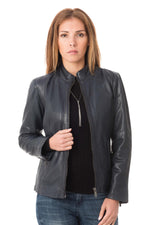 Opdag modellen LOREL NAVY fra mærket DEERCRAFT, en fremragende lammeskinds læderjakke.