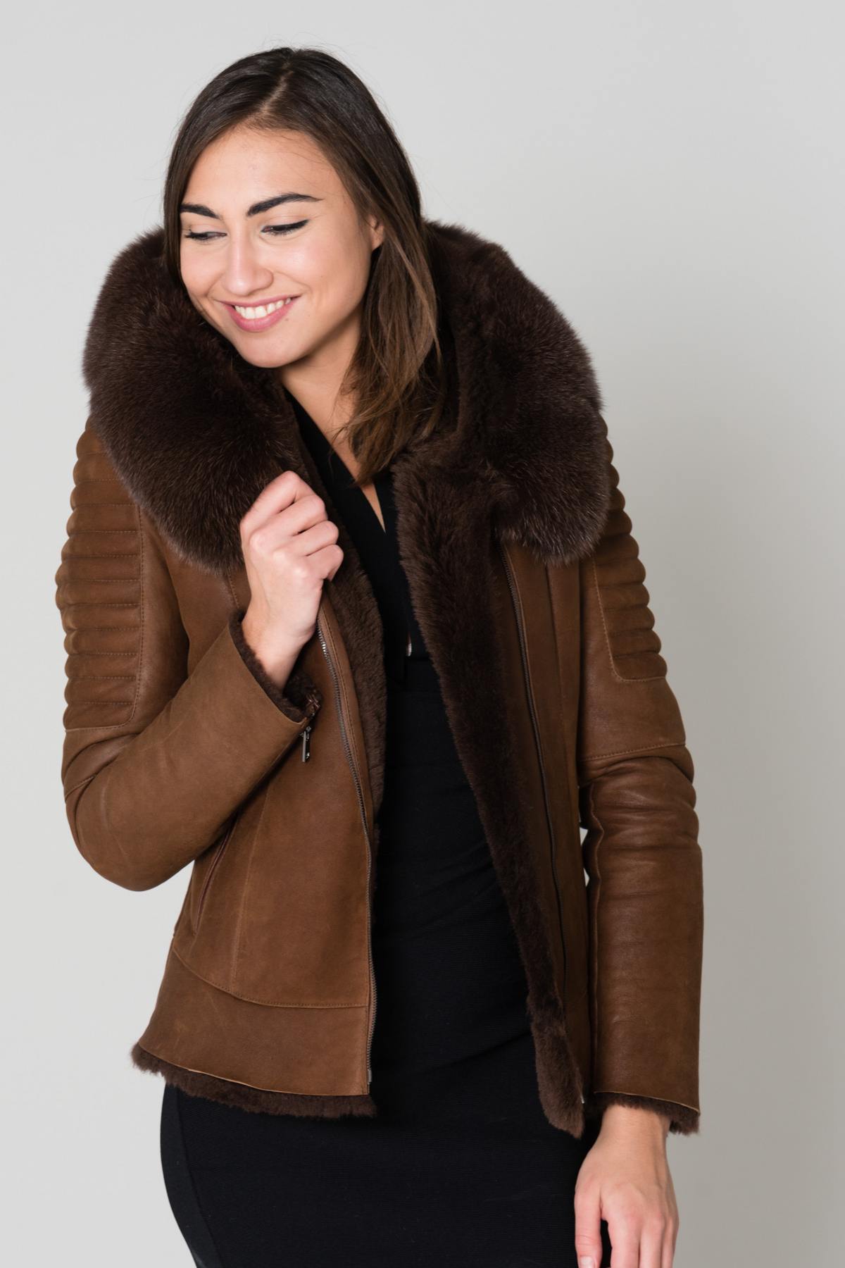 Brown sheepskin leather jacket - Image n°7