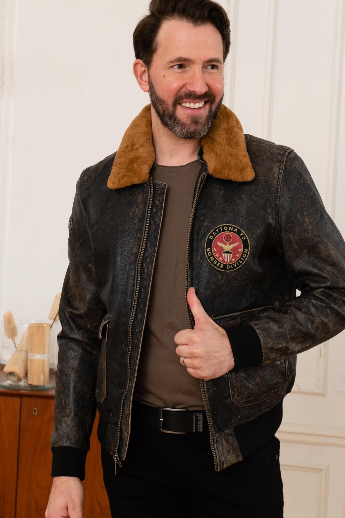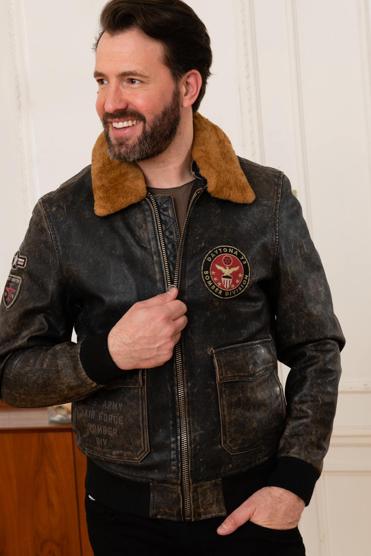 Herrejakke Daytona JOHN EAGLE COW ASFALT SORT