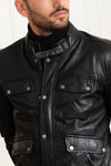 Oakwood Trucker Black 501 er en læderjakke til mænd, der subtilt kombinerer praktisk og stil. Den er lavet af ægte fårelæder, et bevis på tøjets kvalitet og robusthed. Dette er en jakke med rund krave med strammestrop. Den lukkes på midten med lynlås under broen med trykknapper. Denne model udmærker sig frem for alt ved sine talrige lommer med trykknapper. Men den har også lynlåslommer (inklusive indvendige lommer). Med sin sorte farve, slanke snit og fremragende kvalitetslæder kan denne Oakwood-jakke bruges til alle slags outfits, uanset om den er elegant eller afslappet.