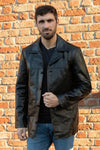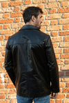 Men's Black Leather Mid-Length Jacket - Image n°1
