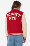 LC8705 RED/BEIGE herrejakke fra Schott-mærket er en bamse lavet af rødt okselæder. Det er en jakke, der passer til alle årstider. Den har et almindeligt eller lige snit, der passer til alle kropstyper.