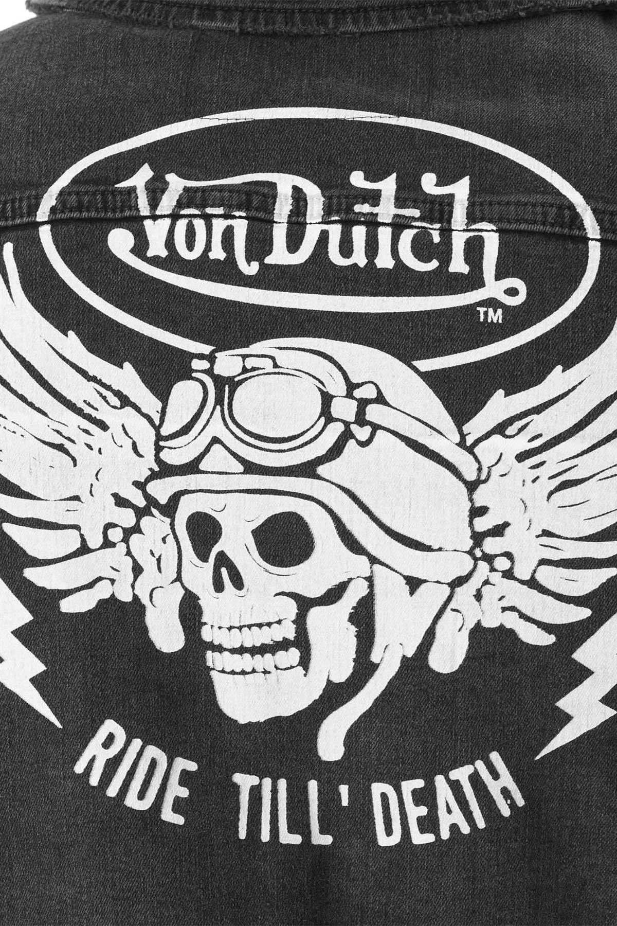 Biker denim jacket with fleece sleeves and hood - Image n°5