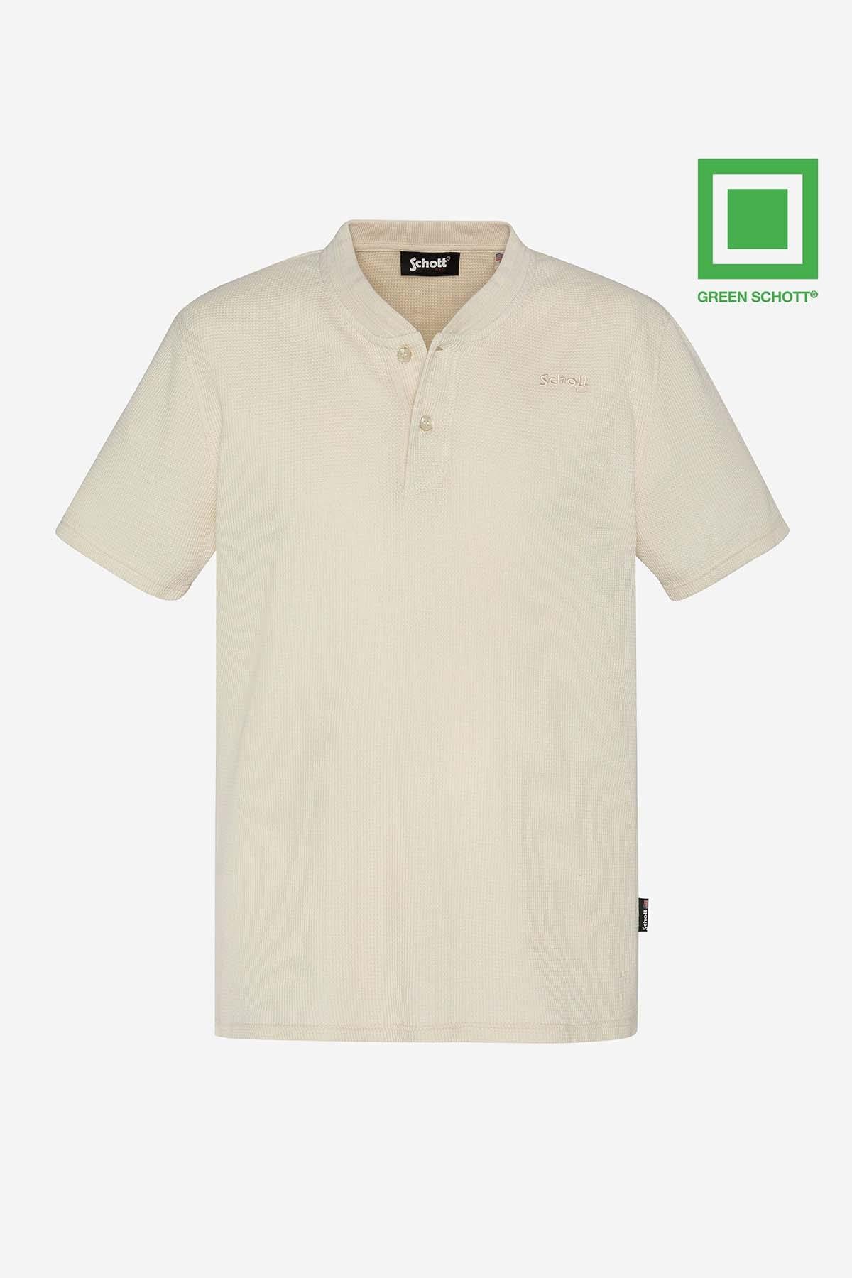 Honeycomb knit Tunisian collar T-shirt - Image n°1
